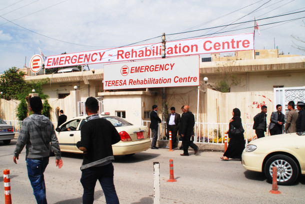 Nel 1995 Emergency ha ristrutturato e riaperto l'ospedale di Choman, un villaggio nel Kurdistan iracheno nordorientale vicino alla frontiera con l'Iran, inviando in loco attrezzature e personale specializzato in chirurgia di guerra. A questo primo impegno ha fatto seguito l'apertura di due Centri chirurgici a Sulaimaniya ed Erbil, rispettivamente nel 1996 e nel 1998. Entrambe le strutture sono state ampliate nel tempo con unità specializzate nel trattamento delle ustioni e delle lesioni spinali.